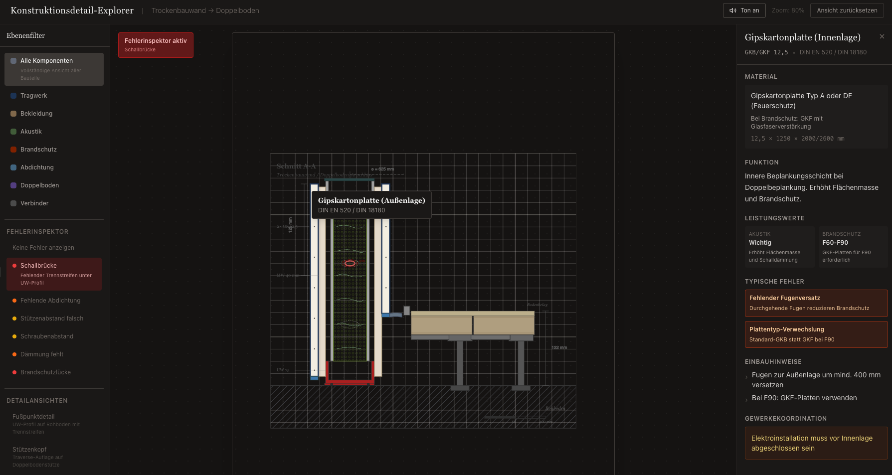 Beschreiben Sie das gewünschte Baudetail in natürlicher Sprache und erhalten Sie eine interaktive, technisch korrekte Skizze – generiert von Claude AI.